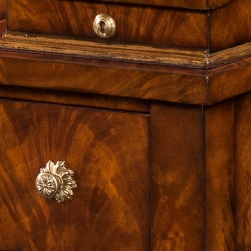 The standout feature of this luxury bureau lies in its breathtaking material selection and artisanal surface design, specifically curated for the discerning eye. The primary surfaces are adorned with rare burl wood veneers, showcasing a multi-dimensional grain that radiates a deep, honeyed warmth. Master artisans at our Foshan customized furniture factory hand-select and book-match every veneer sheet to ensure a visually symmetrical and opulent finish. This level of material excellence is why our collections are a primary choice for the India imported furniture sector and among prestigious interior designers seeking "one-of-a-kind" quality for their high-end residential export furniture projects. Each surface is treated with a multi-stage hand-rubbed process, resulting in a soft luster that highlights the organic beauty of the timber while providing a durable platform for professional work.