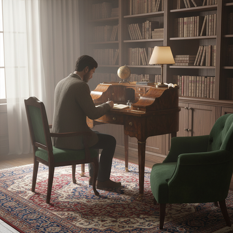 EKAR Buckingham Heritage Luxury Secretary Desk | Hand-Carved English Style Writing Bureau | Premium Home Office Furniture
