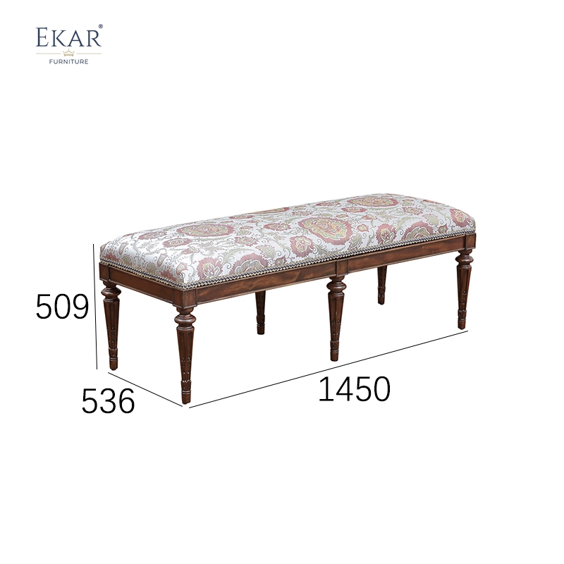 In a market flooded with trendy, disposable decor, the EKAR Charleston Bench stands as an investment in enduring quality. The combination of solid wood joinery and durable jacquard fabric ensures that this piece will remain a staple of your home for years to come. It is furniture that ages gracefully, becoming a familiar and loved part of your daily routine. Whether you are using it to stack decorative pillows at night or as a quiet spot to read by a window, the Charleston Bench enhances the functionality and beauty of your living space. By choosing this piece, you are adding a touch of heritage and refined taste to your personal sanctuary.