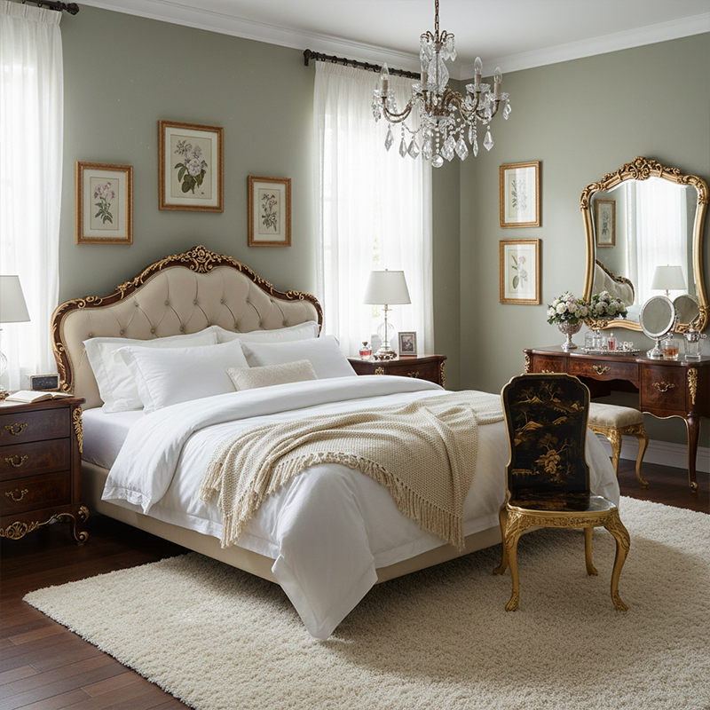 The structural integrity of the Dynasty Heritage series is as impressive as its visual brilliance. The frame is constructed from high-grade solid hardwood, providing a foundation of absolute stability and structural permanence. The entire framework is then encrusted with hand-applied gold leaf gilding, which traces the intricate acanthus leaf carvings and floral scrolls along the legs and the perimeter of the frame. This rhythmic interplay of shimmering gold and deep lacquer creates a three-dimensional texture that catches and reflects ambient light, adding a warm, regal glow to the interior. As a leading Foshan customized furniture factory, we ensure that these gilded details meet the highest international standards, providing a tactile richness that is as satisfying to the touch as it is to the eye, ensuring your investment remains a standard-bearer for global luxury.