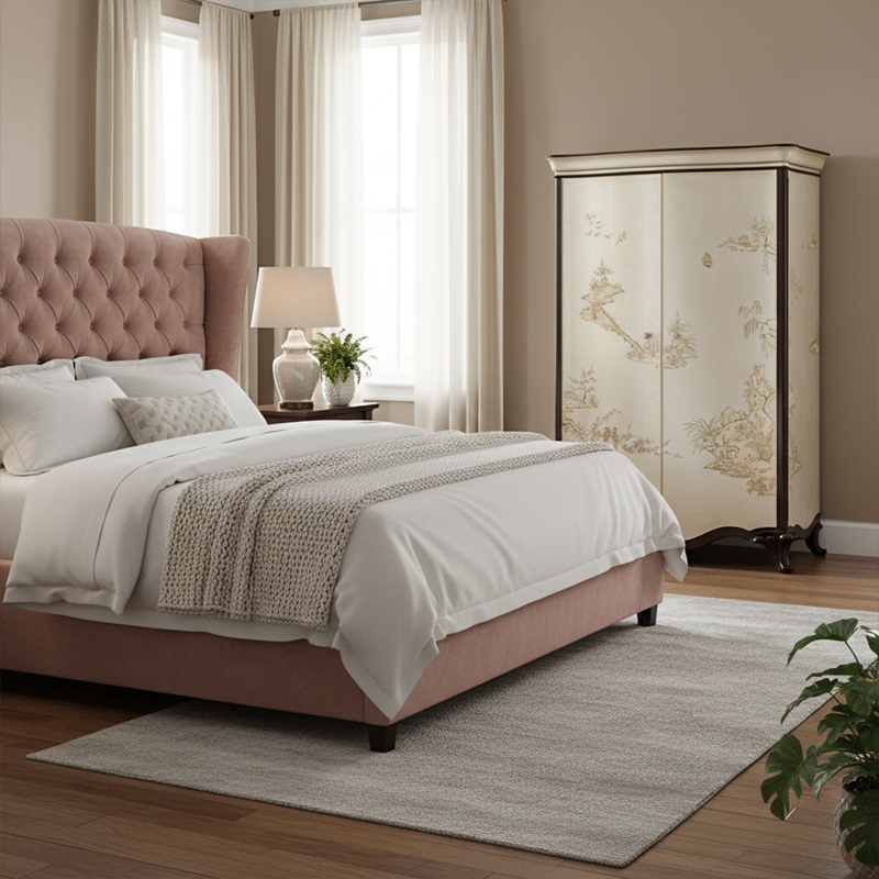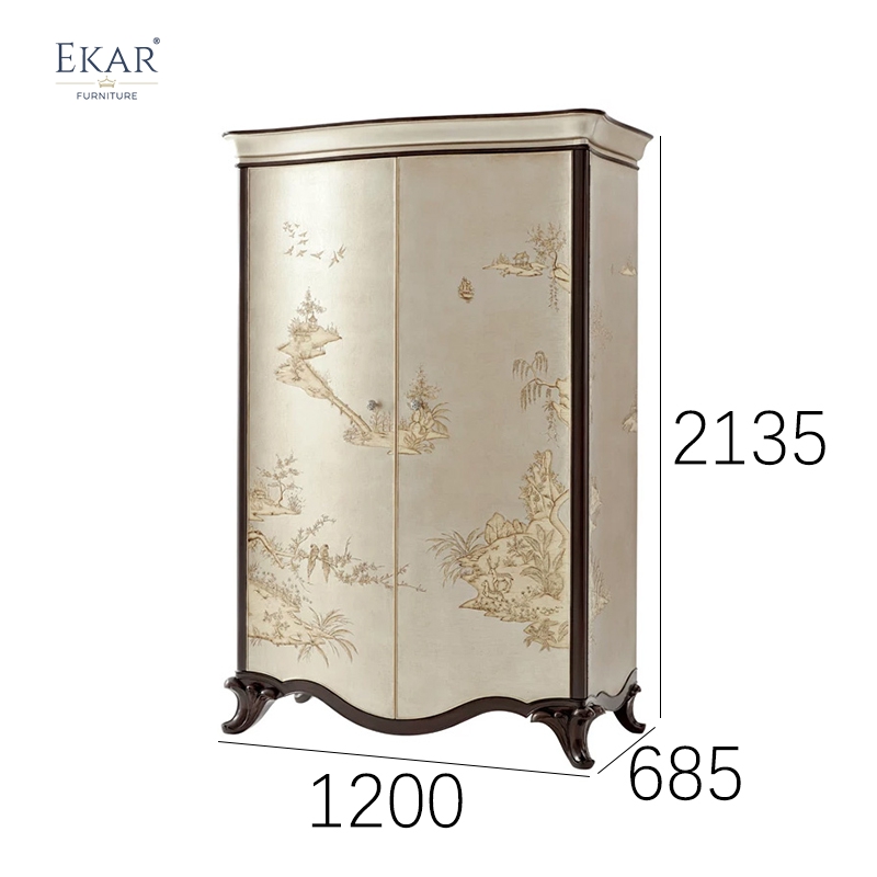 Transform your master suite with the EKAR Florentine Luxury Armoire. Featuring a hand-painted silver leaf finish and exquisite English-style craftsmanship, this armoire is produced by our premier Foshan export furniture factory for discerning global clients seeking prestigious home decor.