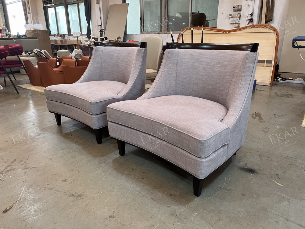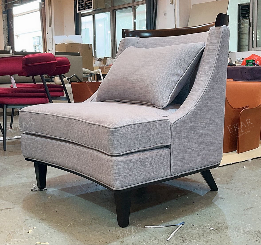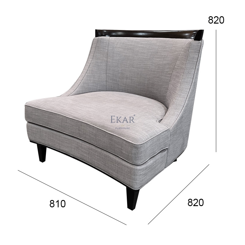 Constructed with a sturdy solid wood frame and upholstered in premium fabric, the Nova Luxe Lounge Chair offers both structural integrity and sumptuous softness. Its ergonomic backrest and deep-seated cushioning ensure comfort during extended lounging, reading, or conversing, while the customizable design allows you to select from a range of fabric textures, colors, and wood finishes – ensuring it seamlessly integrates into your unique decor, whether modern minimalist, classic opulent, or eclectic.