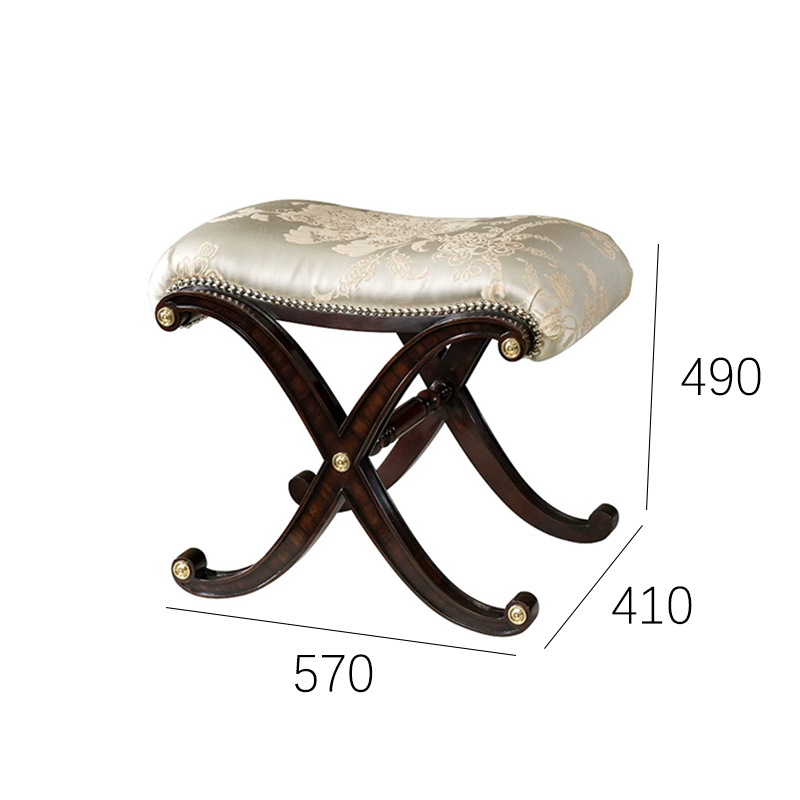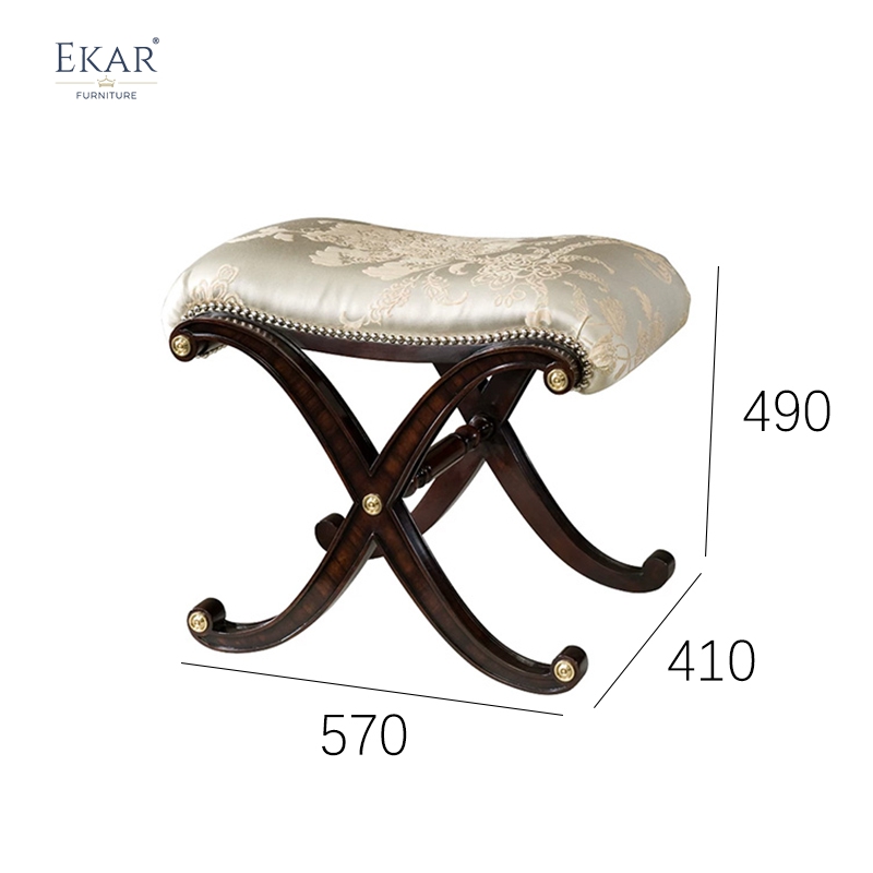 EKAR Sovereign Luxury Vanity Stool | English Style Hand-Carved X-Frame Bedroom Stool |