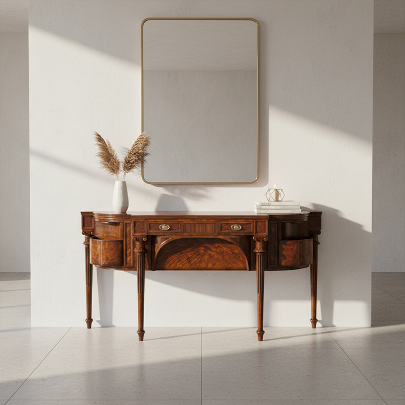 The EKAR Winston Heritage Console Cabinet is a definitive statement of intellectual authority and architectural grace, meticulously designed by EKAR FURNITURE to serve as the structural anchor for the most prestigious interior environments. As a premier mid-to-high-end furniture customization factory, we have sculpted this piece to capture the lyrical essence of the British Regency and Georgian eras. The silhouette is defined by its sophisticated "demilune" or bow-front facade, which provides a rhythmic curve that breaks the visual monotony of standard linear hallway spaces. This isn't just a functional entryway unit; it is a structural masterpiece for your home, reflecting the superior woodworking expertise and aesthetic depth that only a top-tier Foshan furniture factory can provide to the international luxury market.